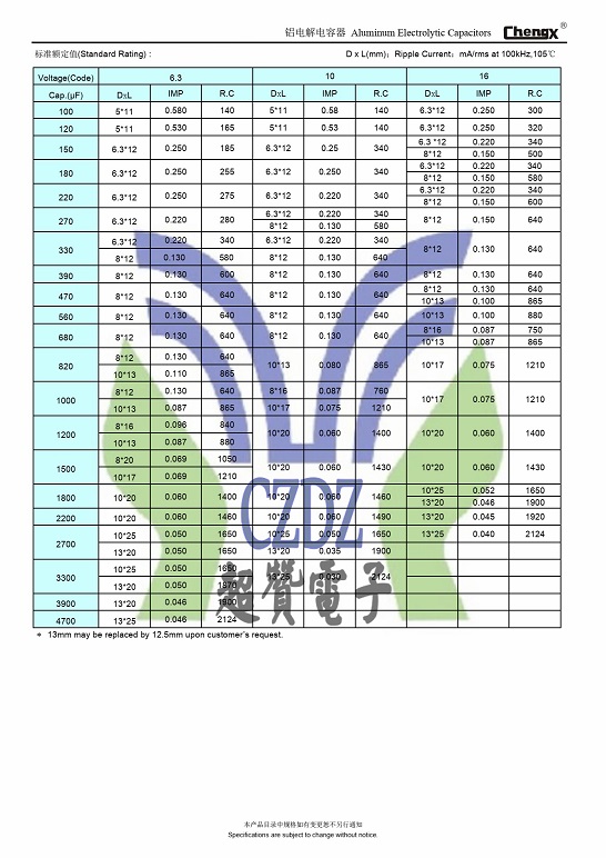 高頻低阻GR系列ChengX承興鋁電解電容