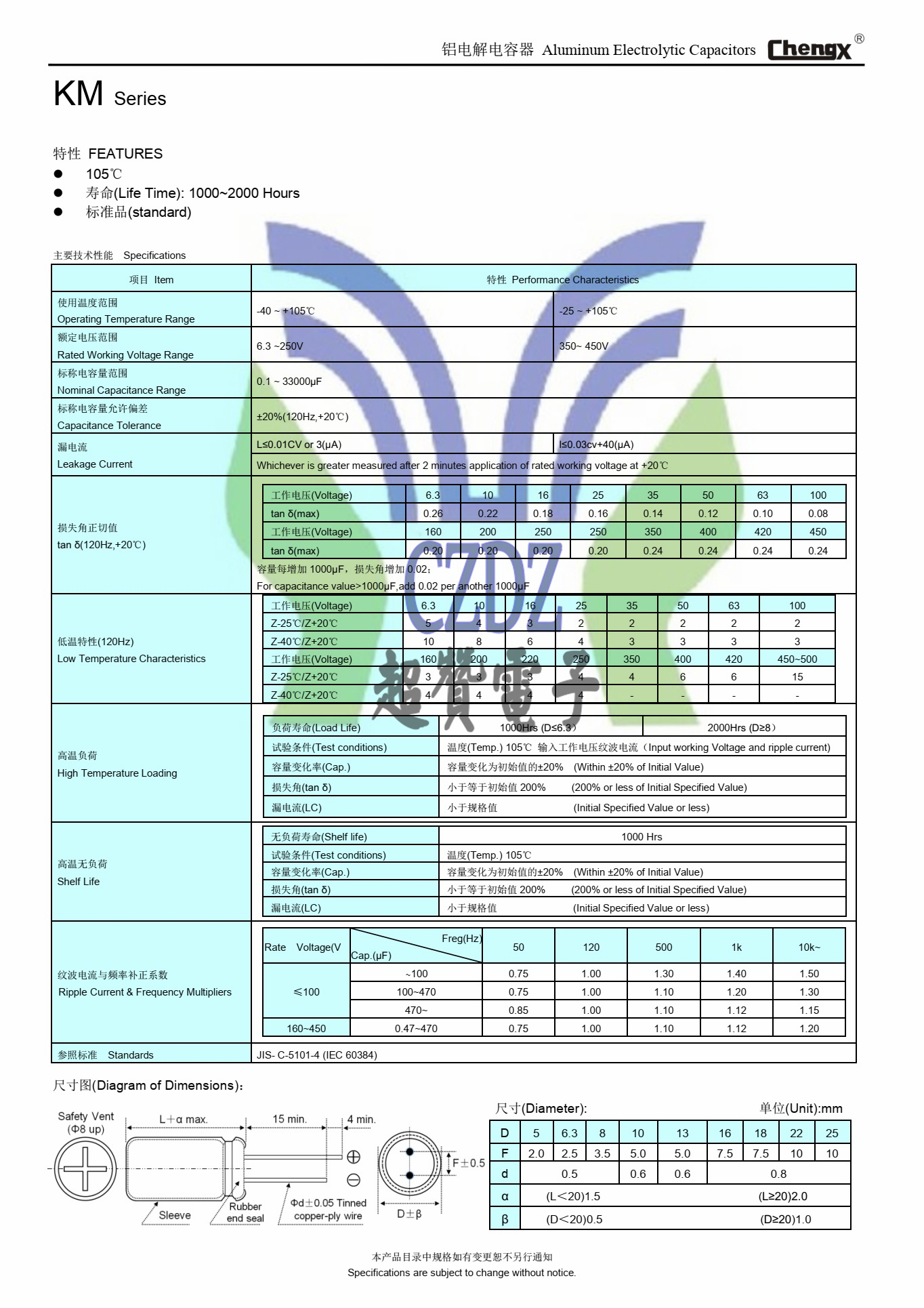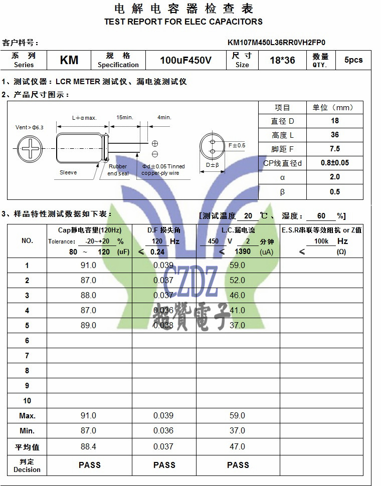 KM 100UF450V 18*36ChengX承興品牌全系列鋁電解電容