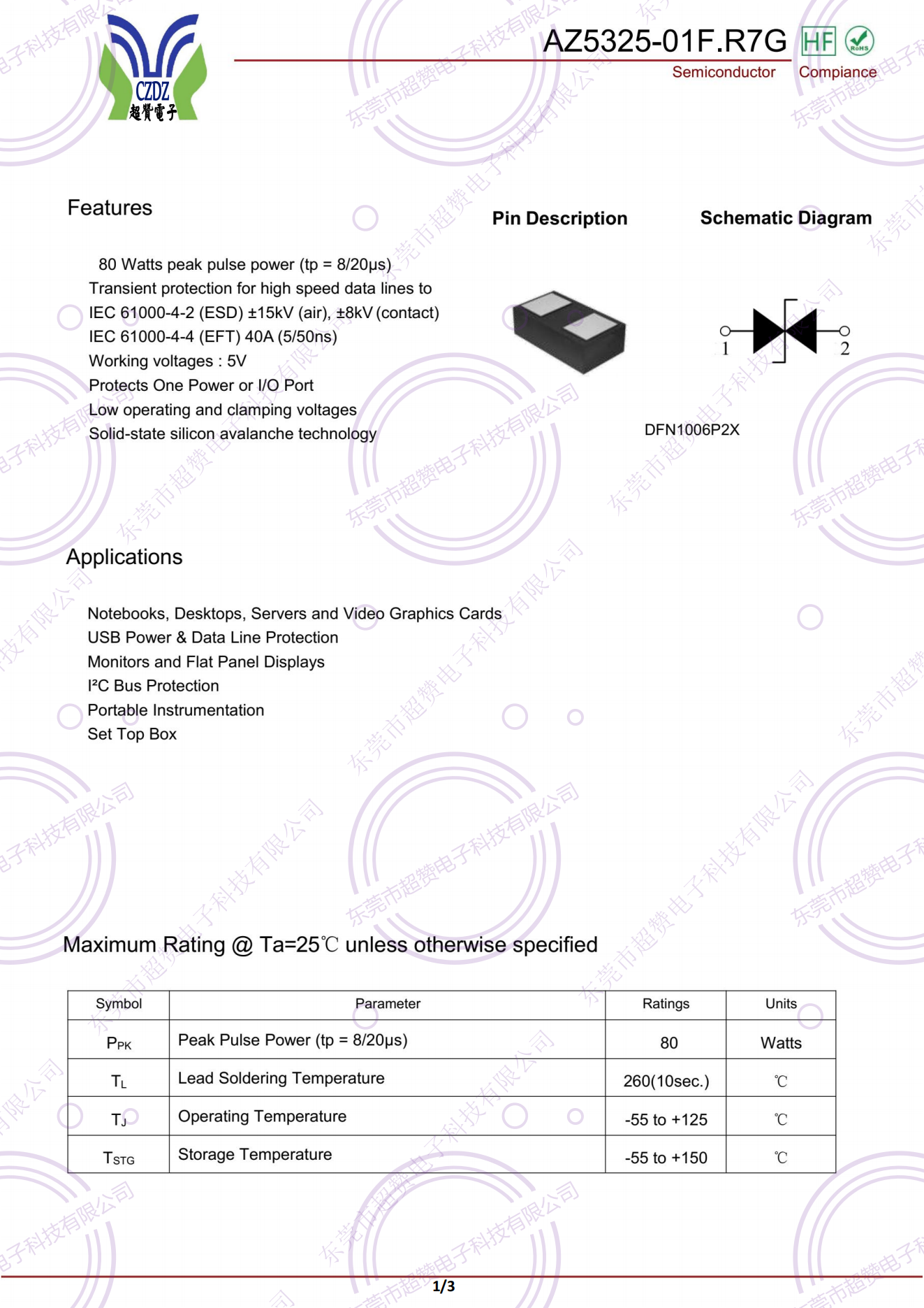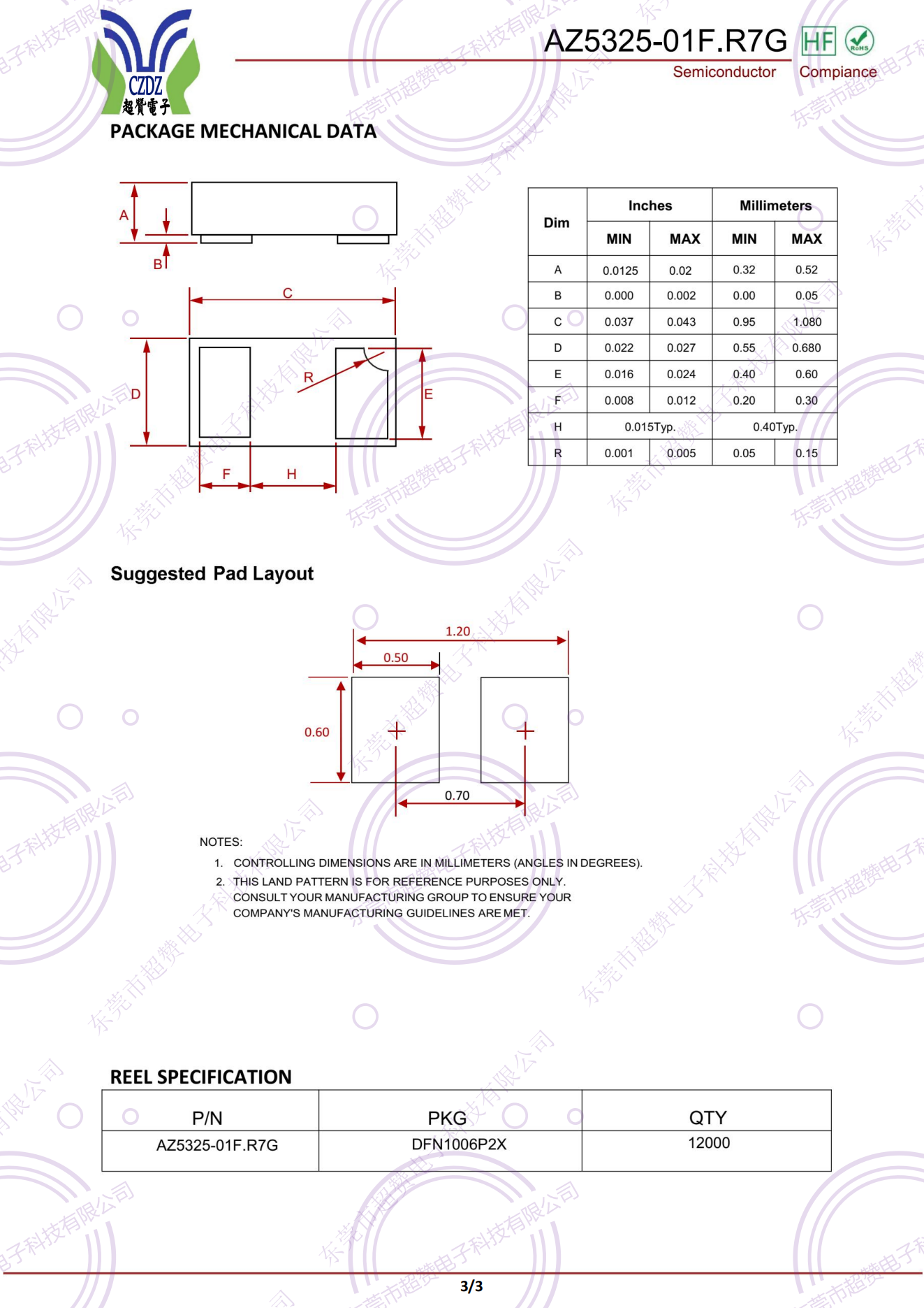 ESD AZ5325-01F.R7G DFN1006P2X CZDZ